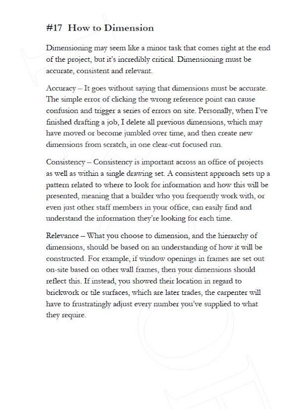 101 Things I Didn't Learn In Architecture School: And wish I had known before my first jobSarah Lebner, December 2019Paperback | 5-1/2 x 8-1/2 inches | 118 pages | 25 illustrations | English | ISBN: 978-0648693703 | $18.00BOOK DESCRIPTION:This book helps students and graduates of architecture kick-start their career and shave months off their professional development. This book will help you:Understand construction basics so you can avoid embarrassing situations and quickly understand instructions.Grasp an overview of the industry and business of architecture so that you don’t feel kept in the dark.Gain personal tips and helpful resources for an enjoyable and successful work life.Young architects are expected to learn much of their trade on the job, in an industry that often treats them poorly and stunts their professional development. The profession is crying out for a resource like this that can provide introductions, insight, perspective and mentor-style advice for young architects in the first five years of their career.Readers are invited to understand concepts through 25 simple diagrams, and language that assumes no prior learning. Throughout the book, further resources are provided as a mind-map of industry information. ...Sarah Lebner is a young Canberra architect who became registered at 26, and the Principal Architect at multidisciplinary firm Light House Architecture and Science by the age of 28. ... She was recently named the National Emerging Architect of the Year by the Australian Institute of Architects.REFERRAL LINKS: dDAB COMMENTARY:The "101 Things I Learned®" books, which started with Matthew Frederick's 101 Things I Learned in Architecture School in 2007, are an immensely popular series; its website even boasts that it is MIT Press's "all-time #1 bestseller!" I, like many architects, own the book, although I feel that it is ideal as a studio companion for architecture students and therefore was too late for me, coming out a decade after I graduated from architecture school (likewise, 101 Things I Learned in Urban Design School came out ten years after I went back to school for urban design). The success of the books, particularly the first one, means there will be plenty of detractors, people who feel that the lessons proffered are not the most valuable ones. That's one way of viewing Australian architect Sarah Lebner's first book, aptly titled 101 Things I Didn't Learn In Architecture School.So what are the difference between what was learned and what wasn't learned? Frederick's book focuses primarily on design studio, spending a lot of time on partis, for instance, those mainstays of conceptual design that see architects distilling their main ideas into formal diagrams. Lebner's book, on the other hand, is more interested in professional practice, technical knowledge, and other practical matters. Are those taught in architecture school? If my undergrad education is any indication, yes, they are. I took professional practice classes, as well as building construction, and computer drafting, though the last was done on my own time at a vocational school since my college was still hand drafting at the time (yes, I'm that old). But if my attention in those classes is any indication as well, they were not nearly as important as design studio and therefore offered information that didn't sink in. Put another way, in my experience — and I'm probably not alone here — much of the practical knowledge of architecture is learned in practice, in those first years after graduation.Likewise, Lebner acknowledges that the goal of architectural education is not to train people to perform tasks. Instead "it provides you with the rich opportunity to develop your design skills, problem-solving, research capability and creative processes, [...] while exposing you to as many different architects, cities, projects and mentors as possible." In other words, you learn how to think like an architect. Lebner is not alone in thinking her education was inadequate once she got a job and realized she needed another education just to get her work done without assistance from older colleagues. So if Frederick's book is a studio companion for architecture school, Lebner's book is the same for recent graduates embarking on their first job. Ideally, they would down this book in one weekend between their graduation and their first day on the job (not that there's only one weekend between the two, but that the book is a brisk read that should captivate future architects).Lebner lives and works in a country, Australia, where the sun is in the north and acronyms such as NatHERS, BASIX, and NABERS are used — and known, not reacted to with a shrug of the shoulders. R-values are even different, as Lebner points out in #64: "American R6.0 is equal to Australian R1.1." So of course the ideal audience for this book are graduates who will be working in Australia. This is logical, as it was written by an Australian architect not long