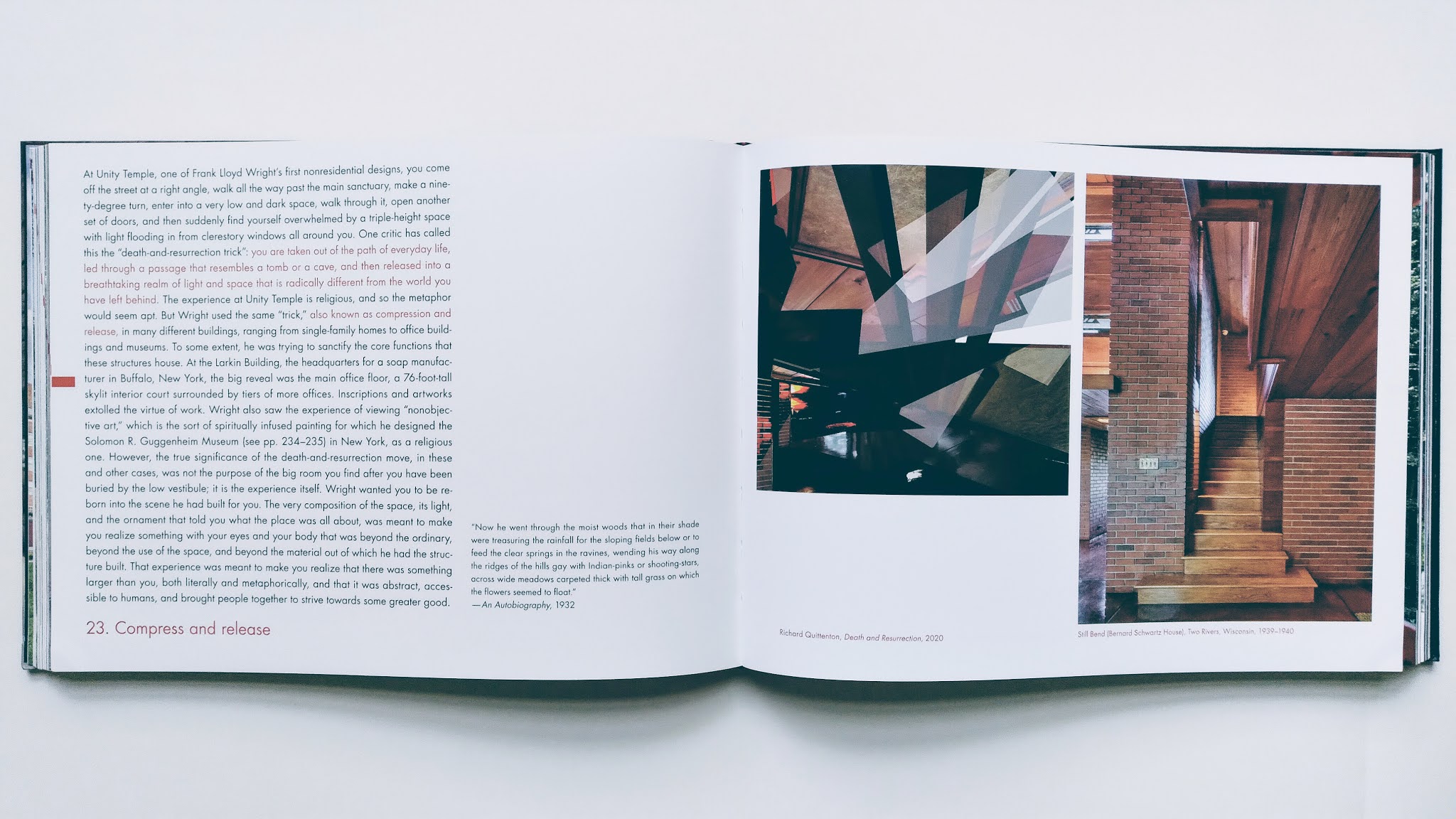 50 Lessons to Learn from Frank Lloyd Wright: Break the Box and Other Design IdeasAaron Betsky and Gideon Fink Shapiro, Photographs by Andrew PielageRizzoli, April 2021Hardcover | 9-1/2 x 7 inches | 248 pages | # illustrations | English | ISBN: 9780847865369 | $32.50PUBLISHER'S DESCRIPTION:Unlike recent books focusing on Wright’s tumultuous personal life and the Taliesin Fellowship, and equally unlike certain works that paint Wright as a mythical hero or genius, this handsome and valuable volume aims to reveal some of the design tools Wright used to create exceptional architecture, interiors, and landscapes—and how we may glean insight from an American master and find inspiration for the thoughtful design of our own homes. By means of succinct examples, pithy texts by noted architecture experts Aaron Betsky and Gideon Fink Shapiro, and evocative visuals provided by photographer Andrew Pielage, they share fifty lessons, or "learning points," with an eye to Wright-designed houses and interiors, ranging from "Let Nature Inspire You," "Screen, Don’t Close," and "Embroider Rooms with Textiles," to "Look to Asia," "Design for Resilience" and "Balance the Whole." Each lesson is accompanied by color photographs, original Wright drawings, newly commissioned diagrams, thoughtful analysis by the authors, and pearls of wisdom gathered from the master's trove of writings on architecture and design. Beyond specific lessons, this volume offers an informal yet richly detailed introduction to this seminal figure, world-famous for his romantic Fallingwater and magical Guggenheim Museum, and will be of much interest to the budding architecture enthusiast as well as to the interior designer, to those seeking ideas for their own homes, and to fans of Frank Lloyd Wright looking for just the right book.Aaron Betsky is a critic, curator, educator, lecturer, and author of more than a dozen books. He is director of Architecture + Design at Virginia Tech. Previously, he was dean of the Frank Lloyd Wright School of Architecture and, after independence, president of the School of Architecture at Taliesin. Gideon Fink Shapiro is an architecture and design writer based in New York and co-author of The New Residential Colleges at Yale: A Conversation Across Time. Andrew Pielage is an internationally published architectural and travel photographer based in Phoenix, Arizona, on a mission to photograph all remaining Frank Lloyd Wright designs. His work has appeared in such publications as National Geographic Traveler and Vanity Fair.REFERRAL LINKS: dDAB COMMENTARY:There is something inevitable about this book. Aaron Betsky is a prolific architecture critic who weighs in on just about every issue that makes architecture headlines, something he did even as his day job shifted to heading the School of Architecture at Taliesin (formerly the Frank Lloyd Wright School of Architecture, now simply The School of Architecture), a position he served from 2015 to 2020, and something he still does as director of Virginia Tech’s School of Architecture + Design in the College of Architecture and Urban Studies. It would be hard for any architect whose office and home alternated between Taliesin in Wisconsin and Taliesin West in Arizona to not be influenced by Wright's architecture, but for someone like Betsky it means a book about Wright was bound to happen. For 50 Lessons to Learn from Frank Lloyd Wright, Betsky teamed up with fellow writer Gideon Fink Shapiro and photographer Andrew Pielage to craft a handsome little coffee table book that tries to "show that Wright is still relevant," they write in the preface, "and that there's a lot to learn from his work without getting bogged down in his cult of personality."Forty-nine of the fifty lessons are organized into seven thematic chapters with paired terms: "Influences and Inspiration," "Site and Landscape," "Design and Society," "Space and Experience," "Composition and Movement," "Building and Body," and "Abstraction and Cosmos." Separate from these chapters is the first of the numbered lessons: "Break the box," which could easily fit inside one or two of the chapters but takes on special significance on its own at the beginning of the book. For Betsky and Shapiro, breaking out of the book is physical, with planes slipping and sliding past each other "so that light and air can come into the corner," but also symbolic, with boxes "limit[ing] our dreams and aspirations." Though not explicit in this lesson, perhaps Wright's greatest impact on architecture — in the widest sense of the word, not just capital-A architecture — was his opening up of domestic spaces previously compartmentalized; his influence is felt every time I see interior partitions knocked down (boxes literally broken) during a home improvement TV show, as inevitably happens in just about every one of them.Racking my brain to ascertain the first lesson I learned from Wright, I think back to high school, when I was fortunate enough in my subur