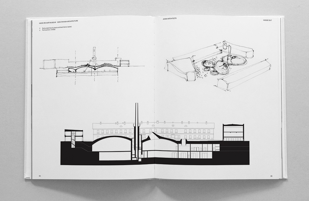 Amos Rex Art Museum – JKMM ArchitectsEdited by Tomas LauriArvinius + Orfeus Publishing, May 2021Hardcover | 7-1/2 x 10 inches | 120 pages | English | ISBN: 9789189270022 | 38€PUBLISHER'S DESCRIPTION:Since its opening, the Amos Rex Art Museum, designed by JKMM architects, has been a great public and architectural success. It is tucked away underground in the ancient glass palace in the heart of central Helsinki.Through its architecture, it has set new boundaries for what a museum can and should be. With its huge arched exhibition halls and eye-catching lanterns that make it feel as though it is above ground, the building never fails to surprise.Art museums seldom manage to be fully functional for all types of art, new and old, and at the same time deliver an architecturally strong experience that changes the city. But here, everything is in place, states Lars Nittve in one of the book’s essays. In this book, a close-up of the museum is drawn in words, sketches, and pictures.REFERRAL LINKS: dDAB COMMENTARY:I'm a big fan of underground buildings. I think landscrapers — or groundscapers, or whatever one wants to call predominantly underground buildings — are an under-appreciated typology. More accurate than typology, building below grade is a commendable design approach in regard to dealing with the landscape: scraping the land, if you will, rather than stacking above it. The reasons for my appreciation are intuitive, but if I start to think about it, it's also because there are so few examples of buildings merging with the land; because there is something anti-commodifying about minimizing the area of a building by digging down, when compared to multiplying the site area through tall buildings; and because the land above subterranean spaces in such projects is often "given back" to the surrounding community in the form of parks and other green spaces.These sentiments clearly apply to Amos Rex, the private art museum in Helsinki designed by JKMM Architects for Föreningen Konstsamfundet ("The Art Foundation Association"), the Finnish cultural association that was founded in 1940 by the late businessman and newspaper editor Amos Anderson, for whom the museum is named. The design by JKMM locates galleries for the museum beneath the existing Lasipalatsi Square; the galleries appear to erupt into the square in a topography of mounds and skylights, plus a mast housing an exit stair serving the galleries below. Also existing is the 1930s Lasipalatsi building, or "Glass Palace," which was restored and renovated as part of the project, now serves as the main entrance for Amox Rex, and has a gift shop and other spaces beneath the preserved Bio Rex cinema.This new book on Amos Rex — the first in the "New Nordic Architecture" series from Arvinius + Orfeus — reinforces the special nature of the subterranean cultural project. Through words and images, the book captures the experience of the place: on the plaza, in the galleries below the plaza, and in the Glass Palace. Photographs are the main means of conveying the qualities of the setting, while the words describe how such an audacious design got built in the first place. The latter is found in the middle of the book — between spreads with exterior photographs and those inside the museum — in an interview between Amos Rex director Kai Kartio and architect Asmo Jaaksi, the "J" in JKMM. Before Amos Rex in Lasipalatsi Square was the Amos Anderson Art Museum in the house Amos Anderson built for himself in the early 1900s. Kartio describes the move to Lasipalatsi in the interview, when he came to the City of Helsinki proposing a building under the plaza and was surprised at their receptiveness. Ultimately, both client and architect found building underground to be the ideal means of respecting the historic Glass Palace, which would have been an awkward fit for an art museum and might have been ruined by an above-ground extension. The floor plans in the book show a large underground gallery substantially larger than the narrow footprints of the landmark buildings overlooking the plaza. Photos depict those galleries with undulating ceilings covered in discs (8,600 to be precise, per editor Tomas Lauri's essay at the back of the book), punctuated by the skylights that project into the plaza. Amos Rex and Lasipalatsi Square are united in this undulating surface, which caps displays of art underground and activates public life at street level.SPREADS: