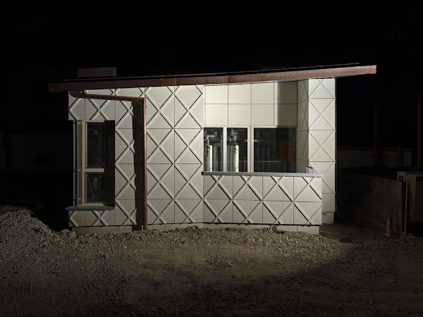 ArchetypesDavid K. Ross; Edited by Reto GeiserStandpunkte/Park Books, August 2021Hardcover | 8-1/4 x 11 inches | 112 pages | 40 illustrations | English | ISBN: 9783038602217 | $49.00PUBLISHER'S DESCRIPTION:Archetypes features a recent series by Canadian artist David K. Ross, who works at the interface of photography, film, and installation. His images of architectural mock-ups, staged at night with dramatic lighting that isolates structures from their surroundings, demonstrate how these objects have become a charged form of proto-architecture. They also change how we view the practice of architecture by documenting and framing unseen aspects of its emergence. Built at full scale, these architectural fragments—to be removed from construction sites as buildings near completion—ensure that a project can be executed exactly to design, and they provide clients with a simulation of a building that leaves little space for speculation. The task of mock-up documentation is usually left to architects and contractors, who take quick snapshots for their reference during site visits. Archetypes is the first-ever photographic compilation of this type, reaching beyond a mere artistic record of building technologies and typologies. Instead, the book offers an effective platform to consider what it means to pre-construct fragments of buildings in all their complexity. Published alongside Ross’s images are four essays framing the historical, technological, and civic significance of the mock-up. Archetypes offers an intellectual and aesthetic reference for a wide range of audiences from professionals in architecture to anyone interested in photography and art, or fascinated by arcane aspects of building construction.David K. Ross is a Canadian artist who uses film and installation to research and document fragmentary and ephemeral aspects of civil and cultural infrastructures. Reto Geiser is a designer and scholar of modern architecture, and an associate professor at Rice University’s School of Architecture in Houston, Texas.REFERRAL LINKS: dDAB COMMENTARY:Back in September 2016 I attended a hard-hat tour of the Hunters Point Library designed by Steven Holl — yes, that library. In addition to venturing inside the building's concrete shell, getting behind the green construction fence allowed me to get up close to the mock-up of the exterior wall that was designed as reinforced concrete covered in aluminum foam, a little bit like the same architect's Editions de Parfums Fédéric Malle store in Greenwich Village. Unfortunately — but not surprisingly, given the branch library's long construction and escalating costs — the aluminum foam was value-engineered out of the building, leading to the substitution of silver paint on the concrete walls. Doubly unfortunate, in its final form the library exterior looks like brightly painted OSB, given how the concrete exhibits the impression of the inexpensive formwork that was used but was never meant to be seen in this way. It's hard not to think back to my brief encounter with the mock-up of Holl's library when flipping through Archetypes, which presents a series of photographs by David K. Ross that hones in on mock-ups at construction sites, many in Switzerland but quite a few in New York City and other North American cities. After all, it's not everyday that people encounter construction mock-ups: the full-scale assemblies made to test design and construction details, set a quality standard for the contractor and their subs, and show to the client and the rest of the project team what a portion of the facade will look like. Occasionally I've come across mock-ups that are publicly accessible (ones for buildings at Europaallee in Zurich come to mind, though apparently they were not exceptional enough for me to photograph), but in the United States they tend to be tucked behind construction fences, making them hidden secrets rather than public displays of what's to come — or not quite to come, in the case of Hunters Point Library.As a few of the examples below indicate, the mock-ups photographed by Ross tend to be architecturally interesting, but more than that they are beautifully captured. Taken at night with bold lighting that gives the impression of the mock-ups floating in a void or being seen theatrically in front of huge black curtains (they are neither), the photographs draw our gaze to temporary constructions, or what Peter Sealy calls in his contribution to Archetypes pieces that occupy a "liminal zone between representation and construction." Sealy's essay relates these 21st-century mock-ups to 19th-century plaster casts and their representation, but I'm more interested in seeing them for their intrinsic value, namely as constructions that further innovation in architecture. Ted Kesik explores this area in his contribution to the book, seeing mock-ups as "an opportunity for all involved on the project [...] to engage in the project together," making it a "more democratic and co