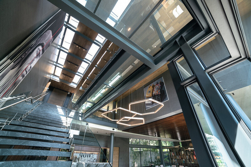 Mexico City, MexicoGrupo Arquitectura Residential Architecture, Art, Garden + Terrace, Kitchen + Bathroom, Lighting Design, Residential Interior Design, Sustainable Development Grupo Arquitectura proudly presents CASA ESCONDIDA, a 1,200m² residence in Mexico City. The home is inserted into a curved geometry terrain on one of its edges at the access level, and its topography presents an unevenness from the street. Accordingly, the social spaces of the house are located below, at the level of the main garden. Access is through a lobby where a glass corridor traveling along the m... (continued)
