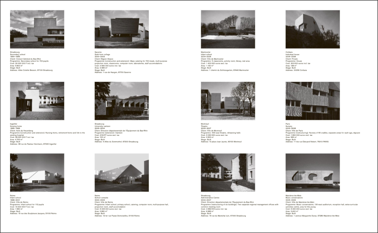 Crossings: Dominique Coulon & AssociésDominique CoulonActar Publishers, January 2021Hardcover | 9-1/4 x 11-1/2 inches | 352 pages | English | ISBN: 978-1948765312 | $59.95PUBLISHER'S DESCRIPTION:The writing of Dominique Coulon & Associés, nominated twice for the Mies van der Rohe award, reflects the agency’s work in connection with different contextual postures and the construction of complex spatial relationships.In circumstances that are often difficult, buildings add value to their locations, transforming them. This book explores the public dimension of architecture taking a new look at the eclectic work of Dominique Coulon; his production of public buildings illustrates the complexity of his architectural approach. Dominique Coulon plays with context, light, and materiality to produce public places that are detailed and welcoming. The areas he proposes affect and accompany the body. His architecture is part of a dynamic relationship, mobilising the senses to propose a specific universe, which may be cheerful, or dramatic. These spaces serve the public dimension of his architecture.Dominique Coulon was born in the Jura region of eastern France in 1961 and studied architecture in Strasbourg and Paris-Belleville. After graduating in 1989, he set up his office in Strasbourg, in eastern France. In 1991, he won the Villa Medici Hors les Murs award and travelled in the United States, Latin America and Europe.REFERRAL LINKS: dDAB COMMENTARY:One of the most interesting projects in the 25-plus-year career of French architect Dominique Coulon is not included in Crossings, the new monograph on his eponymous firm. It is the six-story building in Strasbourg that houses the office of Dominique Coulon & Associés as well as the architect's own home. The two programs interlock, with the office basically downstairs and the apartment upstairs; a scissor stair separated by wire mesh creates distinct, yet visually connected work and living routes up and down the building. Architect Luca Merlini, in one of the four conversations inserted into the book on pink pages (second spread, below), asks Coulon why he didn't include the building in the book. His reply: "It's not an oversight — it's more of a choice. The agency works almost exclusively on public buildings — it's the collective dimension that interests us. So including this project in the book would have been rather out of place."With multiple schools, libraries, sports complexes, and theaters, among other public functions, I can't help but agree with Coulon. Nevertheless, I'm glad Merlini asks the question, in turn drawing readers' attentions to the architect's wider oeuvre as well as his influences and ways of designing and thinking. At first I found the 65-page "Conversations" section a bit odd: it's a lot of text, and considering how little most architects actually read, I couldn't help think the conversations might have worked better if they were spread out evenly among the eighteen completed buildings rather than in one chunk. But by talking with a fellow architect (Merlini), a neuroscientist (Claude Bonnet) a client (Étienne Butzbach), and two philosophers (Daniel Payot and Alexandra Pignol), the four conversations held more interest than I was expecting. Too many monographs feature interviews that are more marketing than insightful, but these are the opposite; they are intellectual and truly conversations, with readers learning just as much about the guests of Coulon as they do about Coulon himself.Still, the meat of any monograph is its projects, and those in Crossings are very good and documented very well. Logically, the standouts for this book blogger are two of the libraries: Thionville (third spread) and Pélisanne. As it happens, each of these buildings features curving glass walls, which make them stand out visually from the orthogonal and diagonal compositions that make up the most of the two decades of buildings on display here. The curving walls of Thionville combine with snaking furniture and amorphous cubbies to make the library look like an inviting place for children to spend time in — not an easy feat these days. Pélisanne, the last project in the book, has just one curved wall: a concave wall that defers to a large tree in front of the existing building it is attached to. On the lower level, the curved wall is fitted with bookcases, while upstairs it is all-glass, with chairs letting patrons sit with a book beneath the tree's impressive canopy. These are two excellent buildings in an excellent portfolio in an excellent monograph.SPREADS: