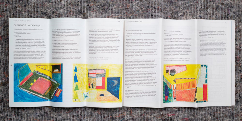 Drawing Matter Extracts 2: Women Writing ArchitectureEdited by Helen ThomasDrawing Matter, 2021Paperback | 16-1/2 x 11-3/4 (5-1/2 x 11-3/4 inches folded) | 44 pages | English | £10PUBLISHER'S DESCRIPTION:Drawing Matter Extracts 2: Women Writing Architecture is edited by Helen Thomas and collects together 24 texts written by women in architectural practice and connected disciplines. The anthology is published to coincide with the launch of the Women Writing Architecture website, an annotated bibliography of writing about architecture by women. Women Writing Architecture includes texts by Helen Thomas, Sheila O’Donnell, Stephanie Macdonald, Philippa Lewis, Caroline Voet, Iris Moon, Desley Luscombe, Zoe Zenghelis, Mari Lending, Maria Conen, Deanna Petherbridge, Marie-José van Hee, Roz Barr, Asli Çiçek, Ana Araujo, Sarah Handelman, Emma Letizia Jones, Anahat Chandra, Emily Priest, Angharad Davies, Deepiga Kameswaran and Emerald Liu.Helen Thomas is an architect, writer and editor based in London and Zurich. Her recent publications include Architecture Through Drawing (2019), Hopkins in the City (2019), Drawing Architecture (2018), Rudolf Schwarz and the Monumental Order of Things (2016). She is a long-term collaborator of Drawing Matter and edits the new Reviews section on www.drawingmatter.org.dDAB COMMENTARY:Helen Thomas read my mind. After receiving the folded Drawing Matter Extracts 2 in the mail recently, I opened it up only to have it snap shut again. Flattening the creases with some considerable force enabled it to lay flat so I could open it up, but the folds remained, frustrating my attempts at looking at the texts and drawings free of distractions. Thomas, in her brief introduction that starts on the cover, above, writes, "all those folds — they are so annoying." Her recommendation: "deconstruct it as you go, flattening each page on the table (like a drawing)." Indeed, that is the best way to tackle the second Extracts from Drawing Matter.Like the first Drawing Matter Extracts, a three-volume set titled Where to Begin?, the second one is populated with content from Drawing Matter, the organization in Somerset, England, that has become prolific on the international scene since launching its website five years ago. Women Writing Architecture, edited by Thomas, features 24 texts — all, logically given the title, written by women — that were originally published on Drawing Matter's website since its 2016 launch. While all but one of the texts are fairly recent, the images — the drawings, but also paintings, models, and photographs — that accompany them are older, culled from Drawing Matter's extensive physical archive.One of the two-dozen texts is the first of Philippa Lewis's now 14-strong "Behind the Lines" series, which will be published this fall by the MIT Press as Stories from Architecture. As that title implies, the extract here sees Lewis forming a story from an architectural image, a 1957 perspective by Rex Savidge depicting the entrance to a commercial building in Newcastle upon Tyne. The story is as much about the entourage populating the entrance as the modern design of the building. Opposite "Behind the Lines 1" is Stephanie Macdonald's sketch of a rocky beach in Tonnara di Scopello, Sicily, accompanied by the architect's words that describe how the buildings depicted "are a backdrop, like the rocks, to the fizz of people."The above examples are indicative of the diversity of the assembled takes on drawing and architecture written by women, though more famous names also entice people to get a copy, be they authors (Zoe Zenghelis, Sheila O'Donnell) or subjects (Zaha Hadid). There are even some potentially famous future names, courtesy Drawing Matter's new writing prizes, a few of them included here. Published to coincide with the launch of the Women Writing Architecture website, a "collectively-created" repository of architectural writing by women that was inspired by the Drawing Matter project, Drawing Matter Extracts 2 is clearly just the tip of the proverbial iceberg. There is a lot of overlooked and potentially invaluable texts on architecture written by women, and in many cases about women architects; if only more of it were given the beautiful Extracts treatment — folds and all.SPREADS: