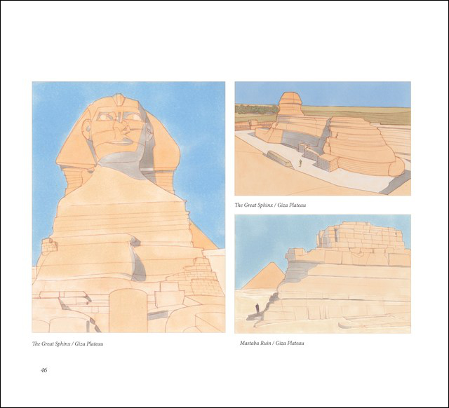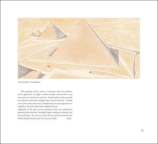 Egyptian Places: An Illustrated TravelogueHenry David AyonORO Editions, September 2020Paperback | 11 x 10 inches | 170 pages | 200+ illustrations | English | ISBN: 978-1951541217 | $40.00PUBLISHER'S DESCRIPTION: Egyptian Places: An Illustrated Travelogue is a rich and multi-faceted account of an architect’s visits to 12 of Ancient Egypt’s most spectacular sites, a journey that transports the reader from the urban metropolis of Cairo and the Great Pyramid of Giza to the remote desert setting of the rock-cut temples at Abu Simbel, with visits to other monumental temples and towering pyramids which line the Nile River. The book recreates that journey, describing important architectural features of these sacred monuments, their mythic foundations and religious significance. Over 200 color hand drawings and graphic studies capture and interpret the character of each site from the architect’s unique perspective. Henry David Ayon practices architecture in Richmond, Virginia and is a former adjunct faculty member at Virginia Commonwealth University where he taught design and drawing, two life-long devotions. A graduate of the University of Texas School of Architecture, he also holds a Master’s Degree in the Science of Historic Preservation from Columbia University. REFERRAL LINKS: dDAB COMMENTARY: Before making my first — and who know, potentially my last — trip to Egypt in early 2019, the closest I physically came to the country's ancient architecture was the Temple of Dendur, which has been on display inside the Metropolitan Museum of Art since 1978. The temple sits in a large space designed by Roche Dinkeloo Architects with a north-facing sloping glass wall that references the battered walls of the ancient ruin. Removed from Egypt due to the construction of the Aswan High Dam, the temple ended up at The Met due to in large part to the creation of the climate-controlled space (other cities and places were vying for the temple, a history recounted in David Gissen's Manhattan Atmospheres). This means the temple is always experienced in a modern space defined by a prominent glass wall and a gridded ceiling. So at The Met it's impossible to see the temple transplanted from Ancient Egypt apart from modern intrusions, but can the same sentiment be said about the in situ pyramids and temples in Egypt? My 2019 trip kept me in one of the new towns on the periphery of Cairo for most of my stay, but on one day I did hop on a field trip to Giza to see the Pyramids and the Sphinx. That all-too-short visit allowed me and my fellow travelers to get close to the massive blocks of the pyramids and as close to the Sphinx as possible, all the while learning about the conservation of the ruins from local scholars. Minus the throngs of tourists, I recall how the vistas of the ancient structures were unimpeded by the minarets, towers, informal housing and other modern structures that litter much of Cairo. Perceiving the ruins of Ancient Egypt comes to mind when looking at architect Henry David Ayon's Egyptian Places because his carefully composed and colored drawings give few hints of the modern world. It just might be that the sightlines in and around Karnak, Luxor, and the other places Ayon visited have a buffer that is similar to Giza, but the style of his sparsely populated drawings — about half are sepia and the other half have washes of beige and blue — gives the impression of empty places untouched by the contemporary world. This isn't necessarily a bad thing, as it allows readers to immerse themselves in the places once tread by pharaohs and now exuding their spirits. Some plans would have been helpful to gain orientation among the large complexes, but the appealing images will be enough for many people, particularly those who have already tread similar ground to Ayon. Accompanying the hundreds of drawings are thousands of words, many of them describing Ayon's firsthand experiences and many of them focused on the histories and architectural compositions of the places. The author is clearly curious about Ancient Egypt, and it should be noted his interest started with what started my commentary: Ayon worked on the Temple of Dendur while a young architect in the office of Roche Dinkeloo. The act of building a model of an ancient temple provoked a strong interest in Egyptian architecture and served as a benchmark on the later journey he would take with Paula, his "lifelong traveling companion." That journey, documented in Egyptian Places, should provoke other architects to follow in their footsteps. PAGES: