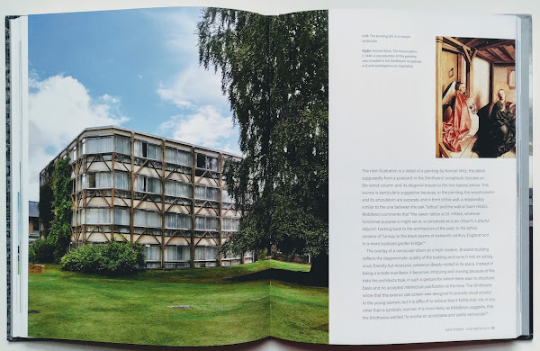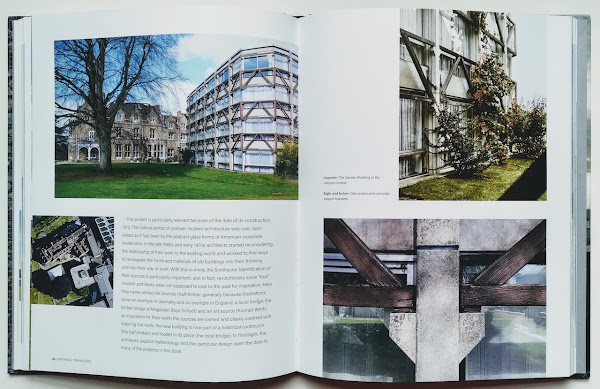 Material Transfers: Metaphor, Craft, and Place in Contemporary ArchitectureFrançoise Astorg BollackThe Monacelli Press, December 2020Hardcover | 8 x 10 inches | 168 pages | English | ISBN: 978-1580935432 | $50.00PUBLISHER'S DESCRIPTION: Architect, architectural historian and preservationist Francoise Bollack explores the use of traditional materials with contemporary forms and the corollary of contemporary materials applied to traditional forms and the blurring of the boundary between the two. Nineteen projects in the US, Europe, Japan, and New Zealand are examined. Among the featured architects are Kengo Kuma, architect of the Tokyo 2020 Olympic stadium, MVRDV, a highly regarded Dutch firm, and Lacaton & Vassal of Paris. Françoise Bollack is the principal of Françoise Bollack Architects, a firm that specializes in preservation and reinvention of historic structures, and a faculty member at the Columbia University School of Architecture, Planning and Preservation. REFERRAL LINKS: dDAB COMMENTARY: A couple chapters in New York architect Françoise Bollack's new book, Material Transfers, are called "Old Forms, New Materials" and "New Forms, Old Materials." These phrases immediately bring to mind Bollack's previous book, Old Buildings, New Forms, from 2013. Evident in the two books is a clear appreciation for old buildings as well as a certain duality between old and new. Bollack has a clear preference for hybrid assemblages over solutions created by either/or thinking, the latter of which often leads to demolition over adaptive reuse and forms divorced from any predecessors in the built environment. While the 2013 book focused on "New Directions in Architectural Transformations," as spelled out by its subtitle, the new book is open to more expansive approaches of contemporary architecture interacting with historic buildings. Yes, there are a few creative transformations of old buildings among the eighteen buildings in Material Transfers, but there are also many new buildings that echo older buildings through their forms and materials. Take MVRDV's Glass Farm, a double-whammy: the zoning-dictated envelope resulted in a farmhouse-shaped building, one the architects wrapped in glass panels printed with images of area buildings. MVRDV also makes an appearance with Crystal Houses, a store on Amsterdam's posh P.C. Hooftstraat that features a replica facade made of traditional terracotta bricks dissolving into solid glass bricks at street level. It and the Glass Farm appear in the book's fourth chapter, "Mimesis, in Defense of Imitation," which follows the two chapters mentioned above. This phrase led me to expect Morris Adjmi's Sterling Mason, a residential building in New York's Tribeca neighborhood in which old and new are fused into one development. Adjmi's addition literally mirrors its early 20th-century neighbor, but with GFRC instead of brick and gray instead of orange. Adjmi does appear in the "Old Forms, New Materials," such that it's not hard to grasp which architects practice the style of architecture Bollack argues for in the book. The building that grabbed my attention the most is the Garden Building, College of St. Hilda's Oxford University by Alison and Peter Smithson, completed in 1970 (spreads, below). Outside of the book's first chapter, "Remembered Forms, New Materials," which looks to the Renaissance and 19th century for precedents for the book's position on forms and materials, the Garden Building is the oldest building in the book. But it's new to me and it's very appealing, which I think this stems in part from what Bollack calls "the overlay of vernacular idiom on a high modern, Brutalist building." Although the pieces supporting the wood screen are concrete pilasters that engage with the building behind it, the mix of wood, concrete, and glass softens the whole and creates a strange hybrid — one architects today can learn lessons from. SPREADS: