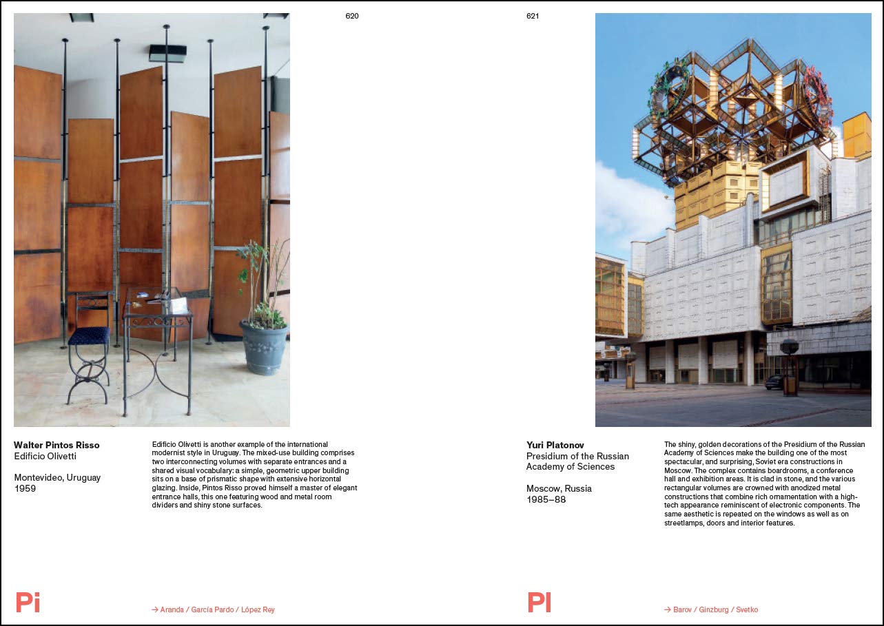 Modern Architecture and InteriorsAdam ŠtěchPrestel, August 2020Paperback | 6 x 8-1/4 inches | 878 pages | 868 illustrations | English | ISBN: 9783791386096 | $40.00PUBLISHER'S DESCRIPTION:In 2006, architecture and design curator Adam Stech embarked on a photographic project to document the best Modernist architecture around the globe. More than thirty countries and more than a decade later, the fruits of that monumental project are gathered in this impressive collection covering nearly a century of architectural history. Driven by a passion for rediscovering forgotten or lesser known architectural treasures of Modernism, Stech took thousands of diverse photographs of exteriors and interiors. This survey features often overlooked details and hidden projects that Stech helps bring to light. His brief commentary on each featured building reveals insights into his vast collection of images that includes treasures of Italian Modernism, American mid-century classics, South American Art Deco, Belgian organic architecture, French Brutalism, forgotten Australian modern houses, and much more. This expansive and inspiring book is the definitive guide to architecture in the 20th century in all its different forms and tendencies from its strict rationalist to flamboyant decorative styles.REFERRAL LINKS: dDAB COMMENTARY:With 868 photographs of 868 buildings across the same number of pages, Modern Architecture and Interiors is the equivalent of a pre-carousel Instagram feed printed on paper and bound into a thick book. The photographs Adam Štěch took of mid-century buildings are presented in alphabetical order by the main architect on each project, resulting in a book that jumps around in time and space as one flips through the book, like I did, from front to back; some cohesion does occur here and there, though, as when certain architects are featured multiple times. Although the book is full of hundreds of buildings I've never heard of and dozens of architects I also didn't know, I decided to hone in on the repeaters, to see what architects Štěch appeared to like more than others and figure out what that might mean.Thirty-four architects have at least four buildings each, adding up to 205 buildings/photos, or nearly 25% of the whole book. Of these 34 architects, twelve of them are in Italy, with the rest of them spread fairly evenly across other countries in Europe (10), the United States (6), South America (3), Australia (2), and Japan (1). Štěch's apparent love for Italy extends to the number of buildings that he photographed by Carlo Scarpa (15), Gio Ponti (11), and Luigi Moretti (10), numbers that are higher than any other architect in the book, outside of Antoni Bonet Castellana (10), the Spanish architect with buildings in Spain as well as Argentina and Uruguay. The last architect is in the minority, though, as most architects in the book are documented with buildings in just one country, subtly expressing the localized nature of architecture in the middle of the last century, before today's global nature of architectural practice took hold.What do the numbers say? For one, they paint a loose picture of Štěch's itinerary over a decade and a half as well as indicating his home base is somewhere in Europe. The back cover text indicates that he visited "almost thirty countries" and most of those fall into Europe and the Americas. Africa is missing entirely from the book, while Asia and Oceania are barely represented. This nitpicking is a bit unfair, though, as Štěch does not assert any comprehensiveness to his selection of buildings. Perhaps the geographical weighting — the global imbalance — made the alphabetical order by architect preferable to a geographic order, where omissions would be more pronounced. Whatever the case, the other big omission that is easy to grasp, thanks in part to a preference for the names of individual architects, is the dearth of female architects. There are very few, but I think that says more about the state of the architectural profession 50 to 100 years ago than any bias in where Štěch pointed his camera.Moving beyond the numbers and focusing on the photographs themselves, Modern Architecture and Interiors is most valuable for the way it hones in on buildings that are not the usual icons. Yes, some of the buildings are famous, but for every Munich Olympic Stadium (first spread, below) there are dozens like Yuri Platonov's Presidium of the Russian Academy of Sciences (third spread). With just one photo each, the book is clearly a jumping off point for learning more about what strikes the reader's fancy; for this one, it happened more with exterior photographs rather than interiors, though I'm amazed at how much access Štěch gained to buildings, many of which are private. There are numerous puzzling photos, but Štěch's brief descriptions aid greatly in understanding what we're looking and why we should care. Without those words the whole book — much like photos on Instagram — would ju