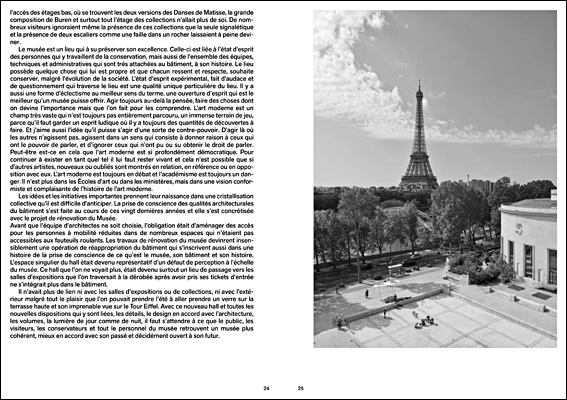 Modern Modern: The Rehabilitation of the Musée d'Art Moderne de Paris by h2o architectesh2o architectes, Building Paris (Editors)Park Books, June 2020Hardcover | 6-3/4 x 9-1/2 inches | 164 pages | 115 illustrations | English/French | ISBN: 978-3038601777 | 29€PUBLISHER'S DESCRIPTION: The Palais de Tokyo, built for the 1937 International Exhibition of Arts and Technology, is an icon of French Art Deco architecture. Located prominently on the northern bank of the Seine near the Eiffel Tower, the vast complex today is a landmark of modern and contemporary art in the French capital. Opened as part of the 1937 International Exhibition, the Musée d'Art moderne de la Ville de Paris (MAM) has always had its home in the eastern wing of Palais de Tokyo. After a major refurbishment directed by Paris-based h2o architectes, in collaboration with design firm Studio GGSV, it has been re-inaugurated in October 2019. This book documents the creation of the new MAM. Alongside brief essays and a conversation with h2o architectes’ founding partners Jean-Jacques Hubert and Antoine Santiard, it features plans and visualizations as well as historic photographs. The construction process is illustrated through a photo essay by artist Laëtitia Badaut Haussmann and reportages by photographer Myr Muratet and architect-photographer Stéphane Chalmeau. h2o architectes, founded by Charlotte Hubert, Jean-Jacques Hubert and Antoine Santiard, is a Paris-based firm working on projects of various types and scales, from housing to public space and cultural facilities. The office is dedicated to architectural, heritage and urban creation and reprogramming. Building Paris is a Paris-based art direction and design studio founded by Benoît Santiard and Guillaume Grall. A special focus of their work is on architecture books. REFERRAL LINKS: dDAB COMMENTARY: The bios on Charlotte Hubert, Jean-Jacques Hubert, and Antoine Santiard in the back of Openings, the monograph on Paris's h2o architectes I reviewed a couple weeks ago, mention that in 2016 the three architects created Eugène Architectes du Patrimoine, an agency "specializing in the restoration of historic monuments." That same year h2o architectes started working on the refurbishment of the Musée d'Art moderne de la Ville de Paris (MAM), which is located in a portion of the 1937 Palais de Tokyo just steps from the Seine. That project, completed in 2019 but currently closed due to the coronavirus pandemic, is documented in Openings, but the significance of the restoration merited its own monograph, also published by Park Books. The 164-page Modern Modern is bookended by two roughly 20-page spreads of photos taken by architectural photographer Stéphane Chalmeau. The empty spaces in the photos at the beginning of the book seem eerily prescient to the COVID-19 closure, but they are the result of being taken in the brief moments between the end of construction and handover to the client. Going back in time, the photos at the back of the book are from another brief phase: just after demolition, when the "bones" of the building were laid bare, and before the start of construction. The latter photos, though beautifully captured, are rough, so it makes sense that they are not the first images readers encounter, that they are found at the back of the book, following texts, interviews, drawings, and other photographs of the project. The most illuminating chunk of the book is the nearly 40 pages of plans, 3d models, and details that follow a brief history of the museum. The plans are cleanly drawn and also include blue shaded areas that draw attention to existing conditions and noticeable changes. For instance, the plan of the forecourt (the lovely space on the book's cover) has shades of blue illustrating the deterioration of the pavers and the abundance of missing flagstones. The floor plans also illustrate how the architects addressed the client's two main concerns: improve the public reception area and improve the staff area. Although the shaded areas appear small relative to the overall plan, the museum stayed open during construction, pushing the architects and contractors to find ways to "complete the operation without disturbing visitors or staff," as explained in the book. The 3d models that follow the plans (third spread below) accentuate, level by level, the intricate nature of the spaces inserted into the building's irregular plan. These are followed by building sections, shaded like the floor plans, and a few axonometric details. The latter depict new column covers and mezzanine floors, but given the extent of work hinted at in the photos at the front and back of the book, I wish there were more details than the handful provided. While many building monographs, or case studies, make good souvenirs after visiting a building, this one is valuable for presenting a process, one all about refurbishing a modern building for the 21st century. With so many mid-20th-century buildings requi