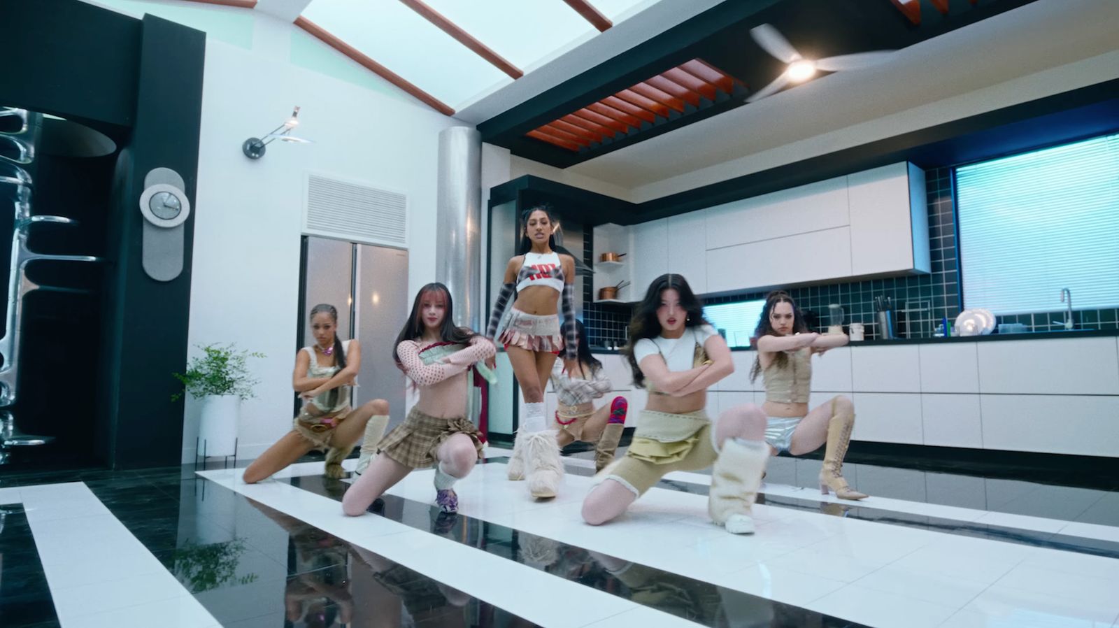 Top still from the music video for "Gnarly" by Katseye courtesy Cody Critcheloe.