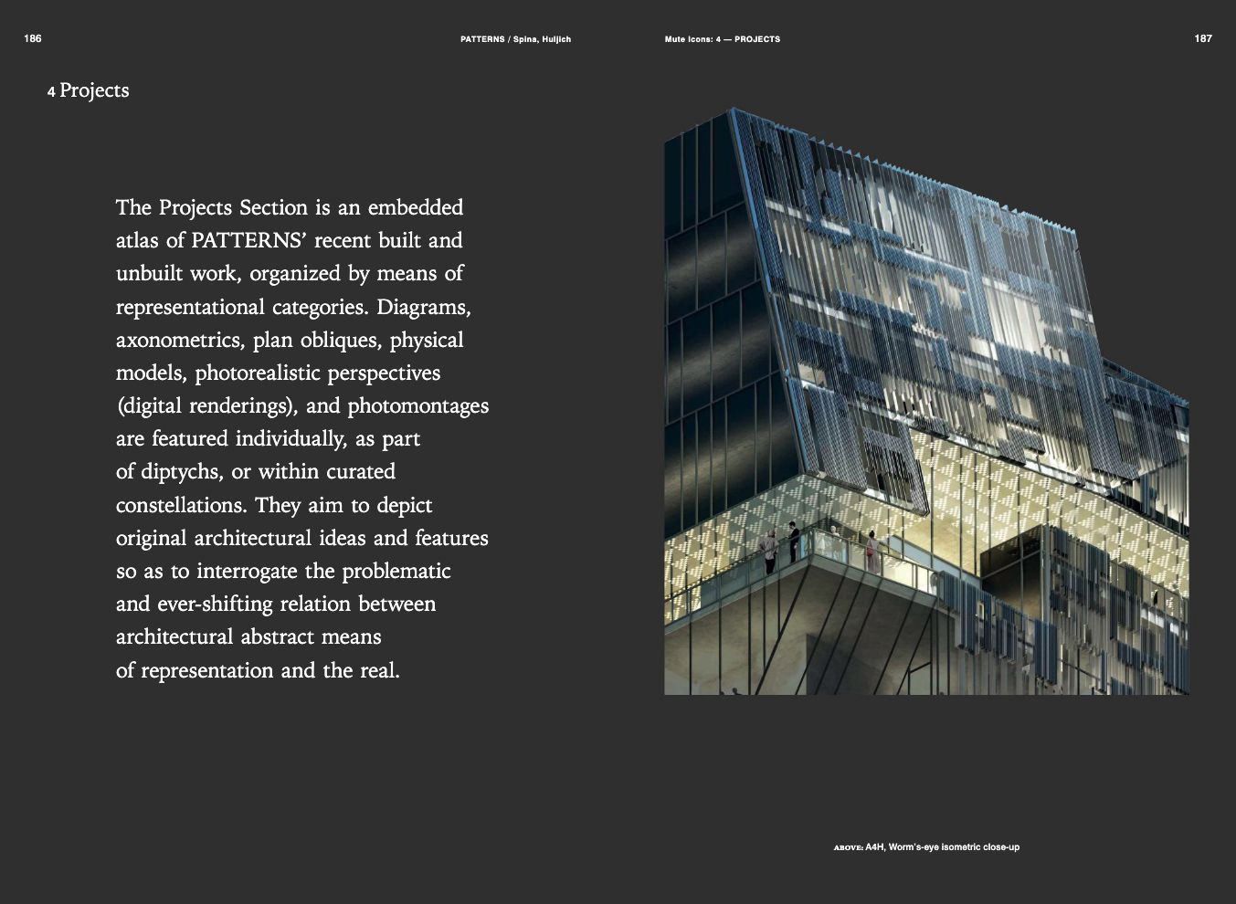 Mute Icons — and Other Dichotomies on the Real in Architectureby Marcelo Spina and Georgina Huljich with Constance ValeActar Publishers, July 2021Hardcover | 6-1/2 x 9-1/4 inches | 335 pages | English | ISBN: 9781945150869 | $49.95PUBLISHER'S DESCRIPTION:Interrogating historical, contemporary, and — more importantly— speculative images, Mute Icons & Other Dichotomies of the Real in Architecture aims to construct a viable alternative to the icon’s cliché and exhausted form of communication, positing one that is decidedly introverted and withdrawn. Developing a language and a sensibility for discovering simultaneous, contradictory, and even unexpected readings of architectural form, Marcelo Spina & Georgina Huljich / PATTERNS’s new book Mute Icons, aims to carve out a niche in contemporary culture and history by suggesting that far from being a crowd-pleaser, architecture can persist within society as a constructive cultural and social irritant. No longer concerned with narrative excesses or with the “shock and awe” of sensation making; the mute icon becomes intriguing in its deceptive indifference towards context, perplexing in its unmitigated apathy towards the body. Object and building, absolute and unstable, anticipated and strange, manifest and withdrawn, such is the dichotomy of mute icons. Dwelling in the paradox between silence and sign and aiming to debunk a false dichotomy between critical discourse, a pursuit of formal novelty and the attainment of social ethics, Mute Icons & Other Dichotomies of the Real in Architecture’reaffirms the cultural need and socio-political relevance of the architectural image, suggesting a much-needed resolution to the present but incorrect antagonism between formal innovation, social responsibility and economic austerity. Intersecting relevant historical antecedents and polemic theoretical speculations with original design concepts and provocative representations of PATTERNS’s recent work, the book aspires to stimulate authentic speculations on the real.Part history, part theory, and part monographic atlas, the book includes contributions by Georgina Huljich, Guillermo Martinez, Ciro Najle, Marcelo Spina, Brett Steele, and Constance Vale.Architect and educator Marcelo Spina holds a Professional Degree from the National University of Rosario, Argentina and a Master of Architecture from Columbia University in New York. Marcelo Spina founded PATTERNS in Los Angeles in 2002 as a speculative platform to explore an increasingly global design culture. Architect and educator Georgina Huljich holds a Professional Degree from the National University of Rosario, Argentina and a Master of Architecture from UCLA, where she graduated with Distinction and was the recipient of several design awards. Georgina Huljich joined PATTERNS as a Partner in 2006.REFERRAL LINKS: dDAB COMMENTARY:Although I'm not big on podcasts nor vlogs, last week I ended up watching an episode of Archimarathon, the channel of Kevin Hüi and Andrew Maynard, because of its title: "What’s The Point Of Architecture History and Precedents?" In it, Hüi and Maynard lament the deficit that students and recent graduates have in understanding "foundational" buildings and the accumulated knowledge they provide. It's a sentiment shared by, among others, Thom Mayne and Eui-Sung Yi, who wrote 100 Buildings as a means of at overcoming "a declining awareness of historical precedent" that they noticed in architectural education. The internet is partly to blame, especially when it comes to finding precedents that date beyond the last few years, but it's also an attitude: that older buildings are not relevant to today's extraordinary circumstances.In Mute Icons, Marcelo Spina and Georgina Huljich mine precedents that span nearly 5,000 years, from Ancient Egypt to 2009, doing it in a way that renders them "familiar yet strange" and enables their analysis to be applied to the projects of their studio, PATTERNS. Put another way, in their hands historical precedents are very much relevant, something I find refreshing, and which makes this book appealing to me. The precedents comprise the first part of the three-part book, with the last part comprising a monograph of PATTERNS' projects and the second part serving as "a conceptual bridge" between the other two, directly showing how the precedents informed, or at least relate to, particular projects. The book's title hints at their approach, in which iconic buildings that "speak clearly" are muted: rendered and analyzed in ways that turns them from familiar designs into, as the authors attest, strange entities. Many people know the Great Pyramid of Giza, Mies's Friedrichstrasse Skyscraper, and SANAA's New Museum of Contemporary Art — to cite just three examples of the nearly thirty precedents in part one, a mix of the built and the unbuilt — through images, be they photographs, renderings, or sometimes drawings. But here they are all rendered similarly as nearly scaleless, monolithic o