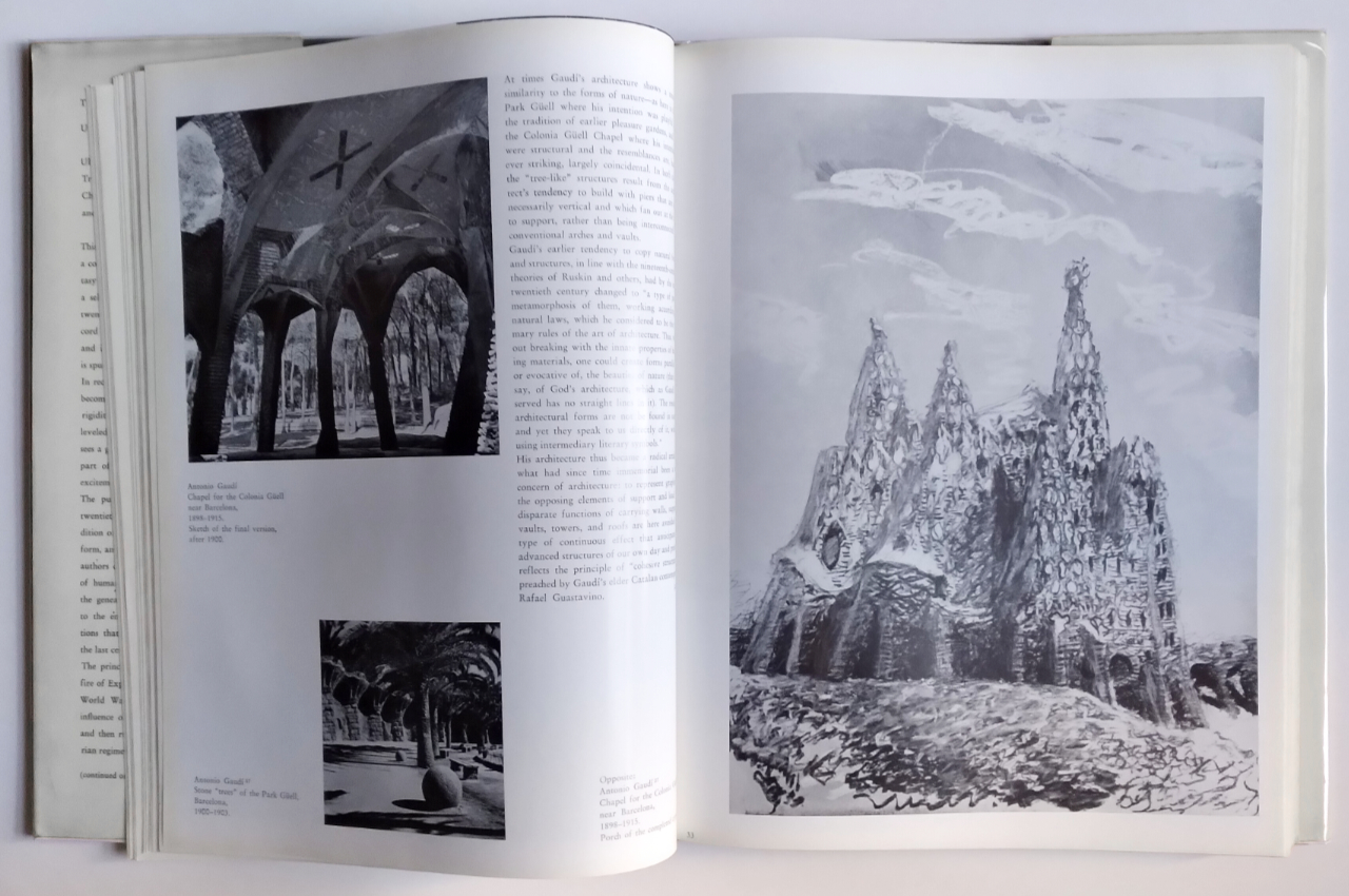 The first edition of The Architecture of Fantasy was released in 1960, in German, with the English translation following two years later. Christiane and George Collins did not simply translate the text, though, they greatly expanded it through their own contributions. (Major additions/revisions are highlighted with "(cc/gc)" in the text.) The first evidence of their hand is found at the start of the "Illustrated" section, where they inserted a few pages on Antoni Gaudí. At the time, there was little on Gaudi in English, but George Collins had just wrapped up his monograph on Gaudí, part of the multi-volume Masters of World Architecture series (George Braziller, 1960); it was the most in-depth English text on the Catalan architect at the time. Just as GC's monograph on Gaudí features voluminous notes, CC and GC's "Notes to the Text and Illustrations," coming right after the "Documents" section, are lengthy and thorough. This section is helpful to scholars, who like clear and deep sources, but it also frees up space in the "Illustrations" section, maintaining the original's strong focus on the Utopian imagery.