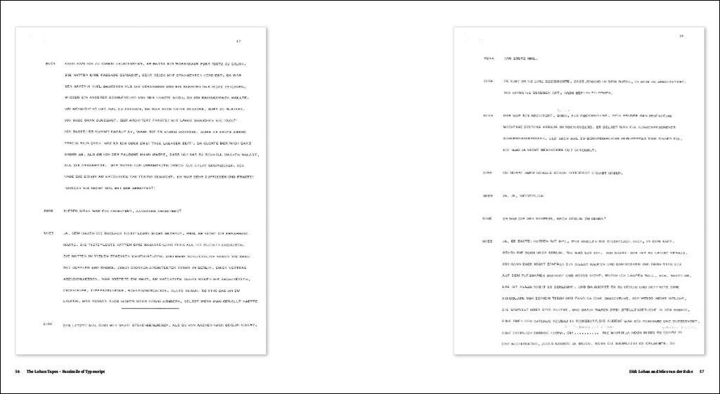 The Lost, Last Words of Mies van der Rohe: The Lohan Tapes from 1969Fritz Neumeyer (Editor)DOM Publishers, December 2020Paperback | 8-1/4 x 8-1/4 inches | 112 pages | 70 illustrations | English | ISBN: 9783869227672 | 28€PUBLISHER'S DESCRIPTION:The German-American architect Dirk Lohan began to record his conversations with his grandfather Ludwig Mies van der Rohe in the summer of 1969. The tapes, recorded during the final weeks of Mies’s life, captured some of the architect’s very last words. They were sent to the Mies van der Rohe Archive of the Museum of Modern Art in New York after his death, though they went missing under unknown circumstances. Only an incomplete typescript remains as a testimony to the conversations. The Lost, Last Words of Mies van der Rohe presents this text in its entirety for the very first time.The conversations relayed in the typescript reveal the famously reticent Mies speaking about his own life with a level of detail, precision, and candour found nowhere else. They shed new light on Mies’s character – not only as a serious, philosophical man but also as a human being alive to the humorous aspects of life. This book features a foreword by Dirk Lohan and an introductory essay by Fritz Neumeyer, one of the world’s most eminent scholars on Mies. Neumeyer’s commentary and analysis provide keen insights into how Mies developed his architectural thinking during his early career, on his way to becoming one of the most important modern architects of the twentieth century.REFERRAL LINKS: dDAB COMMENTARY:The inside flap of this book's back cover indicates that The Lost, Last Words of Mies van der Rohe was "published as volume 111 in the Basics series" put out by Berlin's DOM Publishers. The young yet sizable series aims to "scrutinize critically the debate on architecture and urban development and also to help shape it." It does this through titles in German, English, and other languages on subjects as varied as patches from Soviet and Russian space missions, shrinking cities in Romania, modern architecture in Venice, Jacques Derrida, and Peter Eisenman (the last two are separate titles, by the way). Featuring what is certainly the last recorded conversation with Ludwig Mies van der Rohe, and what is therefore a truncated recounting of his life story, The Lost, Last Words is, at first glance at least, mainly recommended to completists: to those assembling the whole series and those who must have every book devoted to Mies.Mies's conversation was with his grandson, architect Dirk Lohan, who moved from Germany to Chicago to work with his grandfather in the 1960s and ironically ended up working on Mies's only German commission, the recently refurbished Neue Nationalgalerie in Berlin. As Lohan recounts in the brief foreword, he and Mies had regular Thursday night dinners, "lively discussions" accompanied by cigars and drinks. It wasn't until many of those dinners went by that Lohan realized he should have been recording them for posterity. By the time he did, sometime in the summer of 1969, his grandfather's failing health had caught up with him, resulting in his death that August and the interruption of Lohan's plan to get Mies's whole life story on tape. Coincidentally, I'm guessing, Lohan — himself a successful architect in Chicago, who restored Mies's Farnsworth House decades ago — is now 83, the same age as Mies when he died.The Lost, Last Words is a book in three parts: a facsimile of the original transcript, most of it in German; an English translation of the transcription keyed to the pages of the original; and, before both of those parts, nearly thirty pages of commentary by Fritz Neumeyer, author of The Artless World, which Lohan considers the "eminent book" on Mies. People with deep knowledge of Mies's architecture and life will no doubt jump to the transcript, which is rewarding for the information he shared on his early years in Germany as well as for revealing what Lohan describes as "a sense for the humorous aspects of life." But they should not skip Neumeyer's commentary; his knowledge of Mies is deep and he's not afraid to raise flags of skepticism during his dissection of the conversation. The value in the book is most directly evident in it making a long-lost tape available to German- and English-speaking audiences, but Neumeyer's historical/critical/annotative text is what holds the book together, putting Mies's last words into context and making this contribution to the Basics series worthwhile.SPREADS: