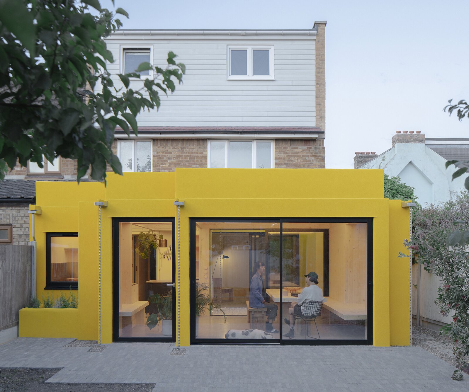 Painted a statement-making yellow, the extension by creative studio Unknown Works is a kit of panels made of spruce cross-laminated timber.