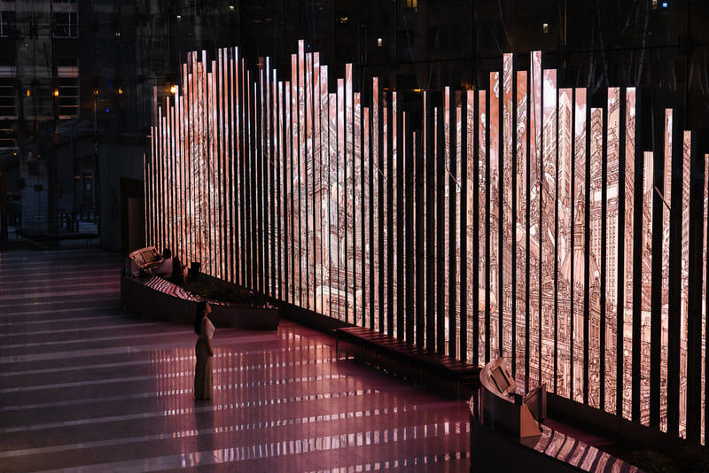 Presented with MAS Context, "Welcome to Tribuneville: An Imaginary Vision of an Old Chicago That Could Have Been" features 60 standout entries from the archived 1922 Chicago Tribune Tower competition redrawn by Klaus and projected on 89 different LED 'blades' comprising the gallery’s 150-by-22-foot media wall installation. Read the full post on Bustler